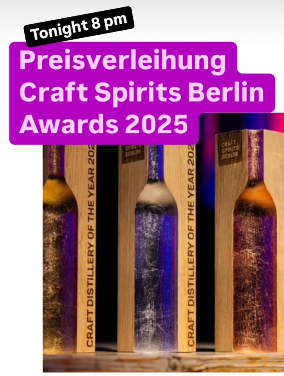 Am 1. März 2025 fanden die mit Spannung erwarteten „Craft Spirits Berlin Awards“ statt, ein Event, dass die innovativsten und kreativsten Spirituosenproduzenten aus aller Welt ins Berliner Säälchen an die Spree brachte. Zum 14. Mal verliehen Theo Ligthart & Dr. Thomas Kochan von der Destille Berlin, Gold, Silber & Bronze Pokale & Gold Medaillen und kürten die Besten der Besten der herausragendsten eingereichten Hochkaräter in 24 Kategorien. Als Highlight des Abends erwartet wurde die 1. Deutsche Destillat Königin Anna Steinmann.